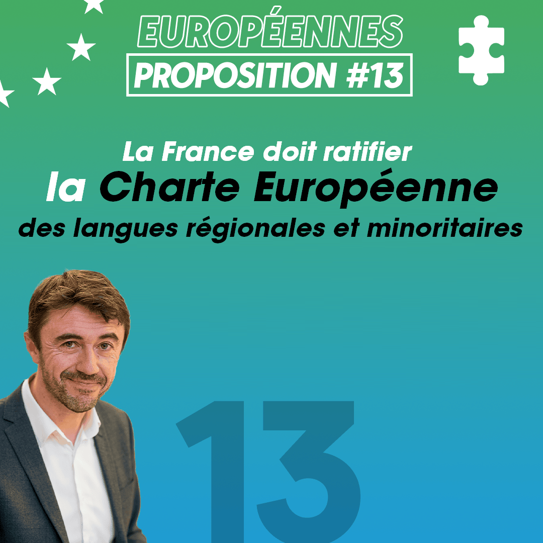 La liste ECOLOGIE POSITIVE & TERRITOIRES milite pour que la France corrige cette anomalie et ratifie au plus vite la Charte Européenne des langues régionales et minoritaires.